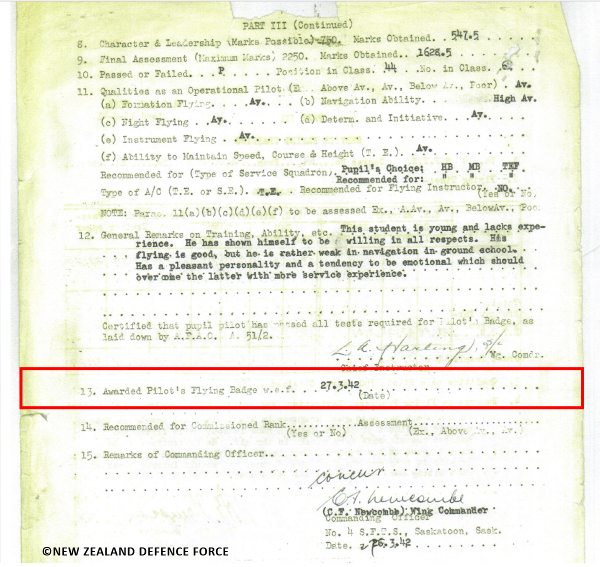 Op 27 maart 1942 is opleiding 44 in Saskatoon voltooid en krijgt Andrew Scott zijn "Wings".